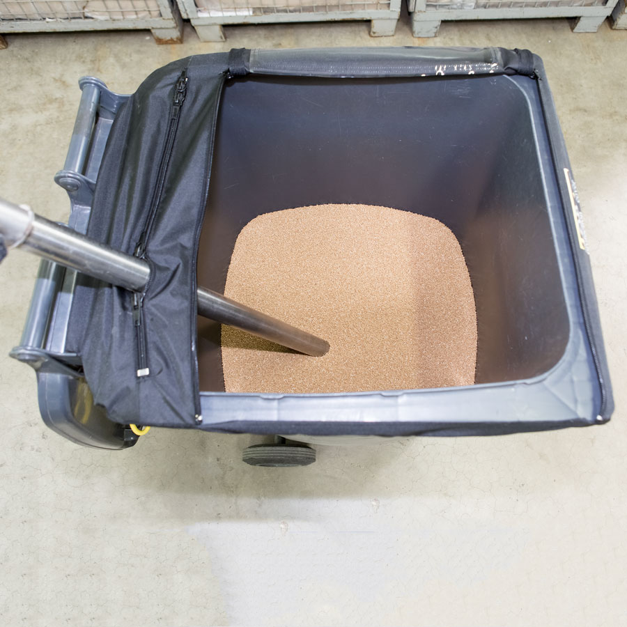 Duże wycięcie pozwala na łatwe napełnianie pojemnika z worka.
