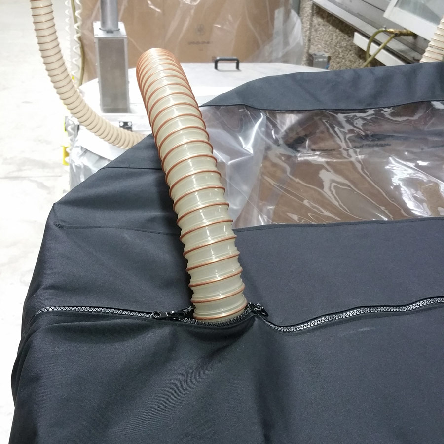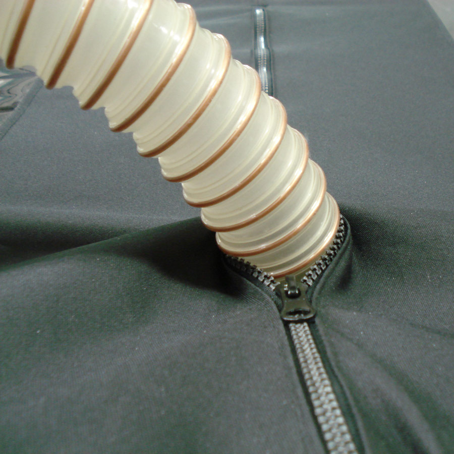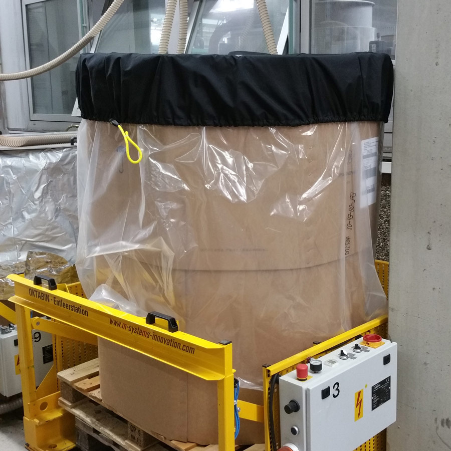 Ponieważ nasze pokrywy oktabinów smart TEX bardzo dobrze chronią i uszczelniają oktabin, może się zdarzyć, że w przypadku dużych wtryskarek lub wytłaczarek zasysane powietrze nie może wystarczająco szybko napływać, co powoduje wciąganie pokrywy do oktabina.